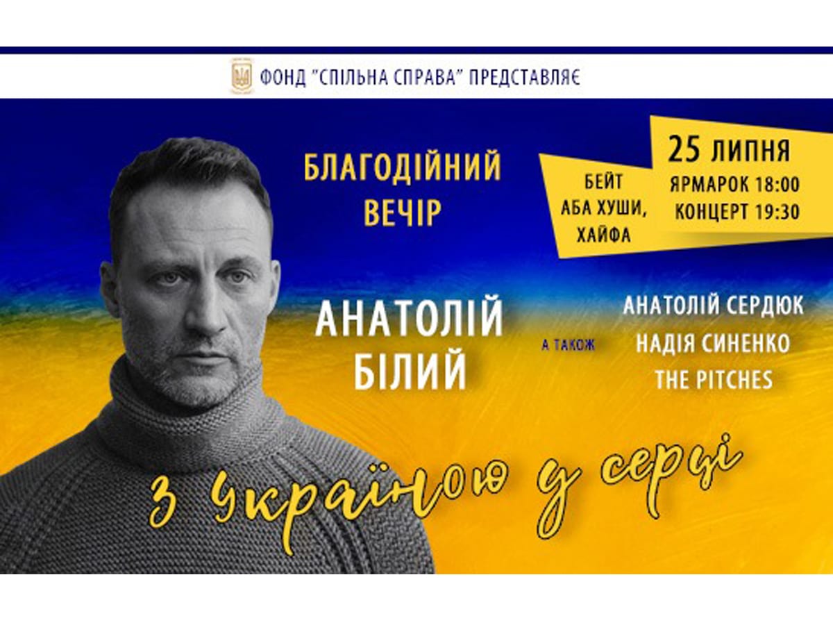 «С Украиной в сердце», благотворительный вечер — концерт с участием Анатолия Белого — Хайфа 25 июля 2024