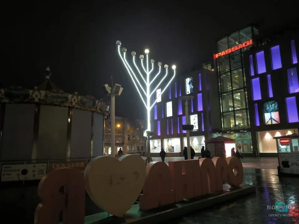 В центре Днепра, на Европейской площади, установили Ханукию по случаю начала еврейского праздника Ханука и зажгли первую свечу на ней.